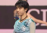 団体の中に居てもどこに居てもあのブルーが光り輝いて何処に居るかすぐ分かりました。やはり一番オーラがあったと思 います。皆の中にいると確かに女の子?な時もあるけどそれが羽生君にしか出せない別の魅力の様に感じます。