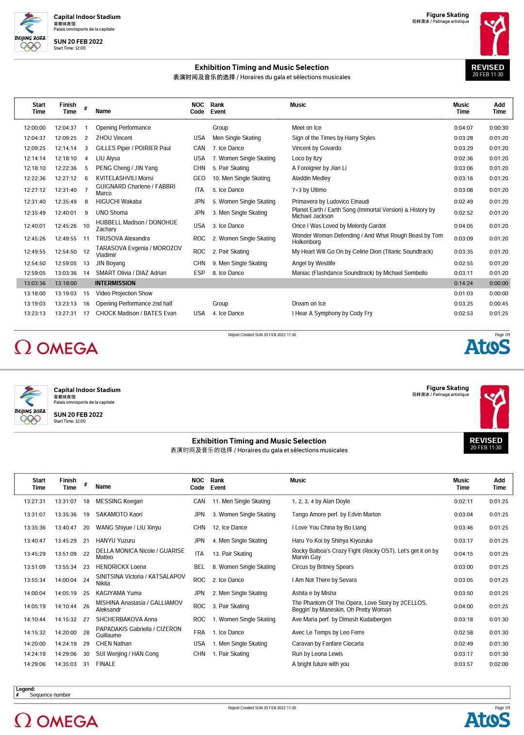 | 11:35 | 12:35 | 【団体】アイスダンスRD | URL | URL | G1|G2 | |