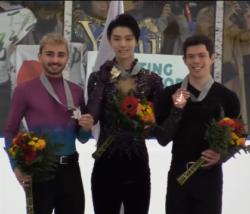 During the medal ceremony, the Canadian unfurled the Japanese flag for winner Yuzuru Hanyu to face throughout his national anthem.