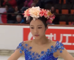 前半のジャンプが回転不足気味(スコアまだ)、さらに3Loの転倒でメンタルが先に落ちたんでしょうね。滑りに伸びがなくなってしまった。この子の一番の魅力は、滑りの美しさだと思うので、ちょっと勿体なかったです。