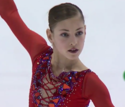 ロシア女子みんなすごいけれど、彼女はその中で飛びぬけていませんか。非の打ち所がないとはこういうことだ、という感じ。非常にうまい、うますぎ。素晴らしいです。フリーは少々メドベ的な振り付けで、ショートのこの歯切れのいい動きから一転、滑らかな動き。この年ですでに芸域の幅広さも持っている。フリーの衣装の色、なかなかきれいでした。こちらのショートだと少し人間離れした完璧美人の感があって、ジュニアらしい若さがあまり感じられないかなと思いましたが、フリーの方はまた違う印象を受けました。